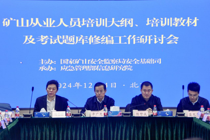 12月4日,矿山从业人员培训大纲、培训教材及考试题库编修工作研讨会在信息研究院召开。国家矿山安全监察局安全基础司司长辛广龙、副司长陈赞成出席会议并讲话。来自矿山领域的中央企业、地方国企、民营企业、省级矿山安全生产培训机构、有关高校和科研院所、企事业单位等35家单位的相关负责人参加了会议,信息研究院副院长杨恩道及安全发展研究中心、出版社相关负责人出席会议。