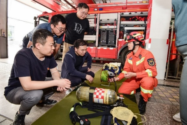 出版社党员干部参观了消防员训练科目演示、消防车辆及装备器材展示及消防站工作生活区,在消防队员演示带领下,现场体验了消防水枪、灭火器灭火等科目,了解了消防救援流程,消防官兵耐心解答大家关心和感兴趣的问题。出版社党员干部和右安门消防分队全体队员在党旗前集体宣誓、重温了入党誓词。通过参观学习,出版社党员干部为消防队员深入践行“对党忠诚、纪律严明、赴汤蹈火、竭诚为民”重要训词精神所鼓舞,被消防队员随时待命、即刻出发的精神所感动,纷纷表示,将以消防队员为榜样,立足编辑出版工作,多出好书和精品书,积极为消防救援事业提供科技支撑和文化助力。