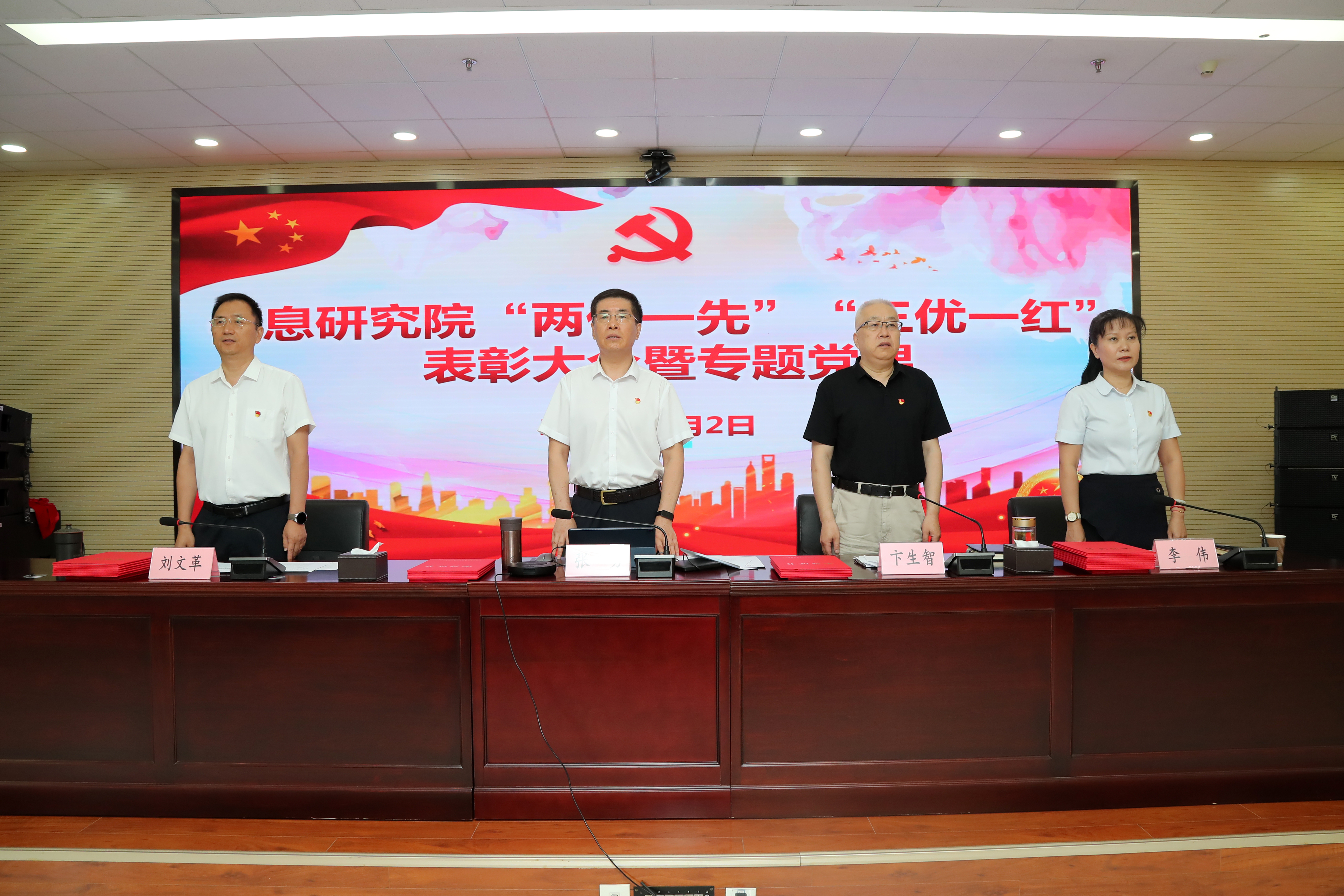 为庆祝中国共产党成立103周年,深入推进党纪学习教育走深走实,进一步增强党组织的号召力、凝聚力和战斗力,激励广大党员履职尽责、担当作为、干事创业,7月2日,信息研究院隆重召开“两优一先”“三优一红”表彰大会暨专题党课报告会。