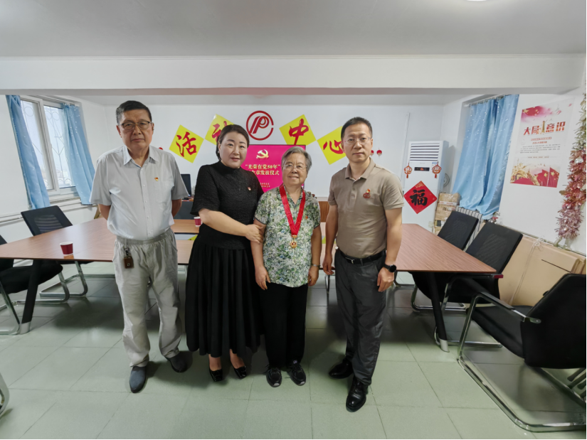 在中国共产党成立104周年之际,为传承红色基因,弘扬建党精神,信息研究院党委分别为离退休党总支赵学纯、应信印务党总支王恒红两位老党员举办“光荣在党50年”纪念章颁发仪式。