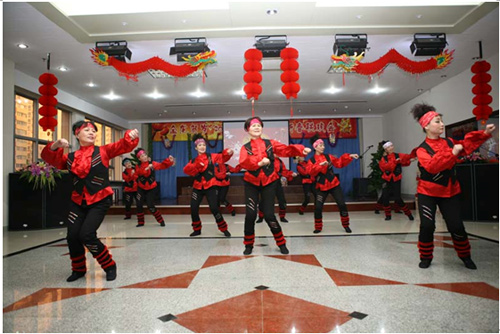 全院各部门、各单位和离退休老同志表演了精彩的歌舞节目,呈现出一片喜庆、祥和的节日气氛。