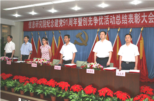 6月28日,信息院召开纪念中国共产党建党91周年暨创先争优活动总结表彰大会,总局直属机关党委副巡视员黄苏娃出席会议并讲话,院领导黄盛初、吕敬民、何国家、董瑞林、刘文革出席会议,全院党员共120多人参加了会议。黄盛初院长主持大会,吕敬民书记在会上讲话。
