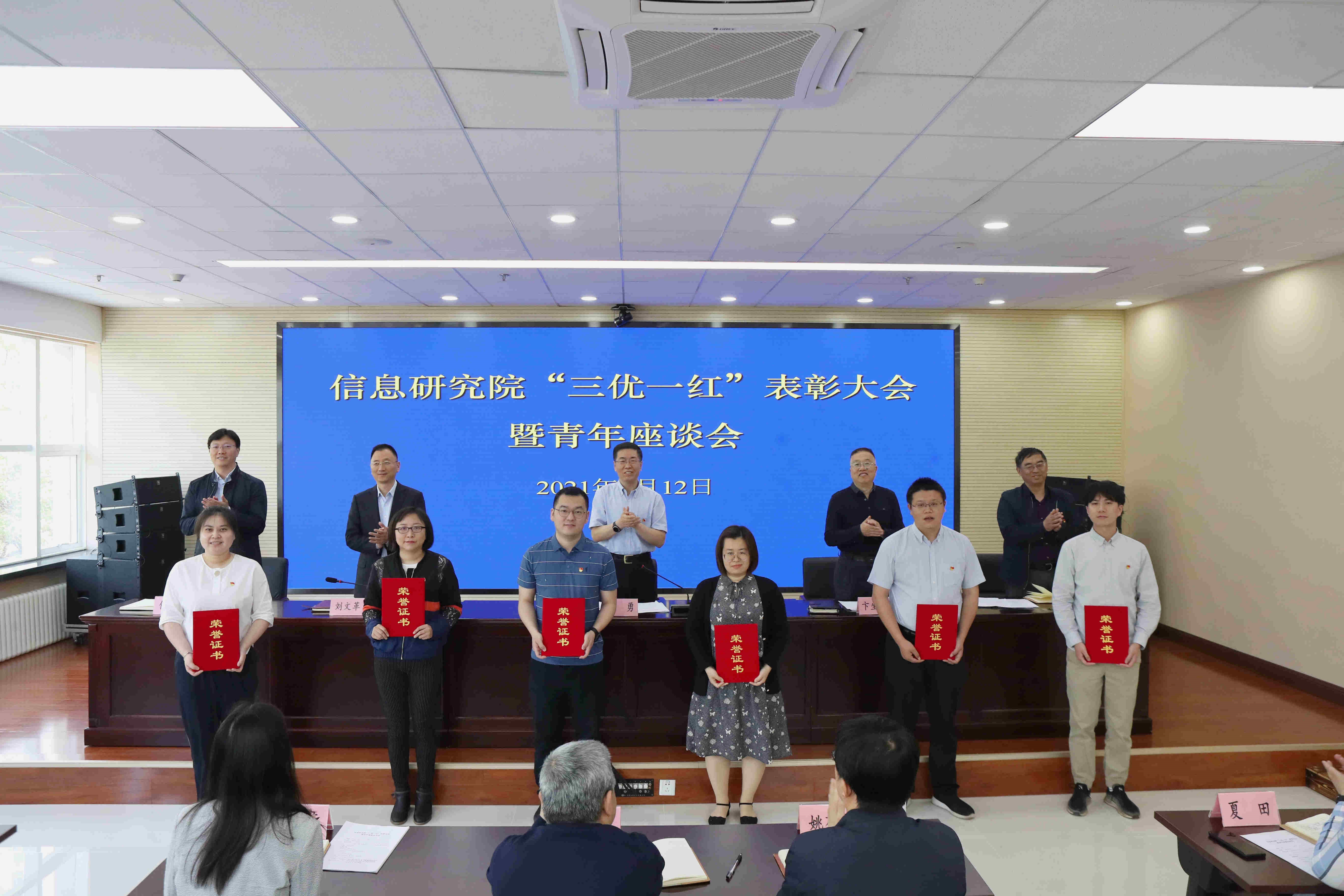 5月12日上午,信息研究院召开“三优一红”表彰大会暨青年座谈会,对荣获2020年度信息研究院“优秀共青团员”、“优秀共青团干部”、“优秀青年”和“五四红旗团支部”称号的先进集体和优秀个人进行表彰。院党委书记张勇出席会议并讲话。在家的院党委成员,各部门、单位主要负责人,团干部、受表彰的同志和部分团员青年代表参加会议。