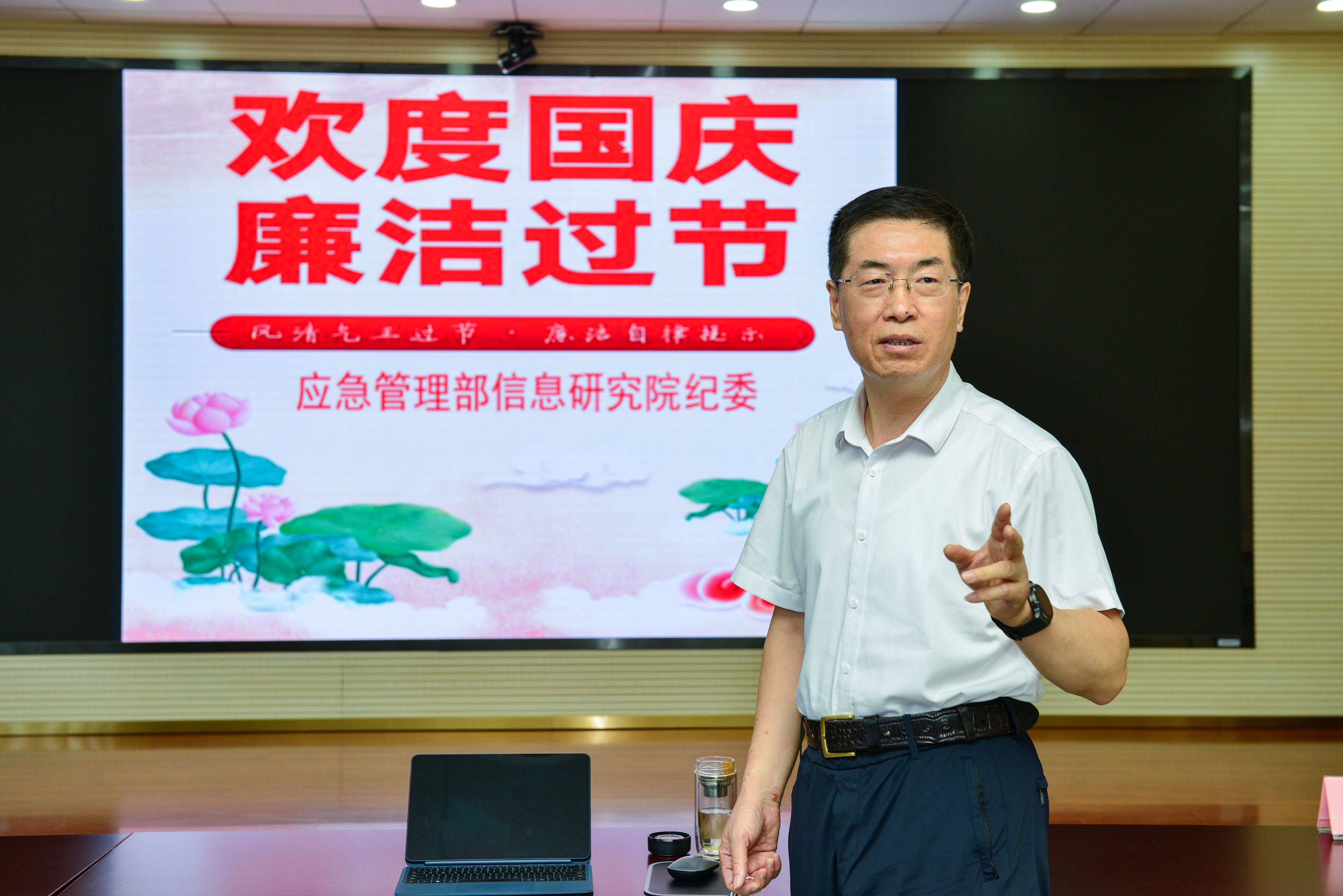 上图为:院党委书记张勇同志对警示教育月活动和节前廉洁工作提要求。