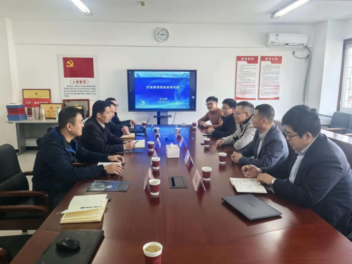 2026年1月19日下午,中国科学院先进技术研究院研究员、所长胡金星,深圳市特发信息股份有限公司新基建事业部行业总监刘强、总经理郭攀,中国机械工业建设集团有限公司工程设计研究院副院长刚轶金,能源与环境(三门峡)国际联合实验室执行副主任朱国龙等一行赴信息研究院进行交流。矿山所负责人及有关技术骨干参加了交流座谈。