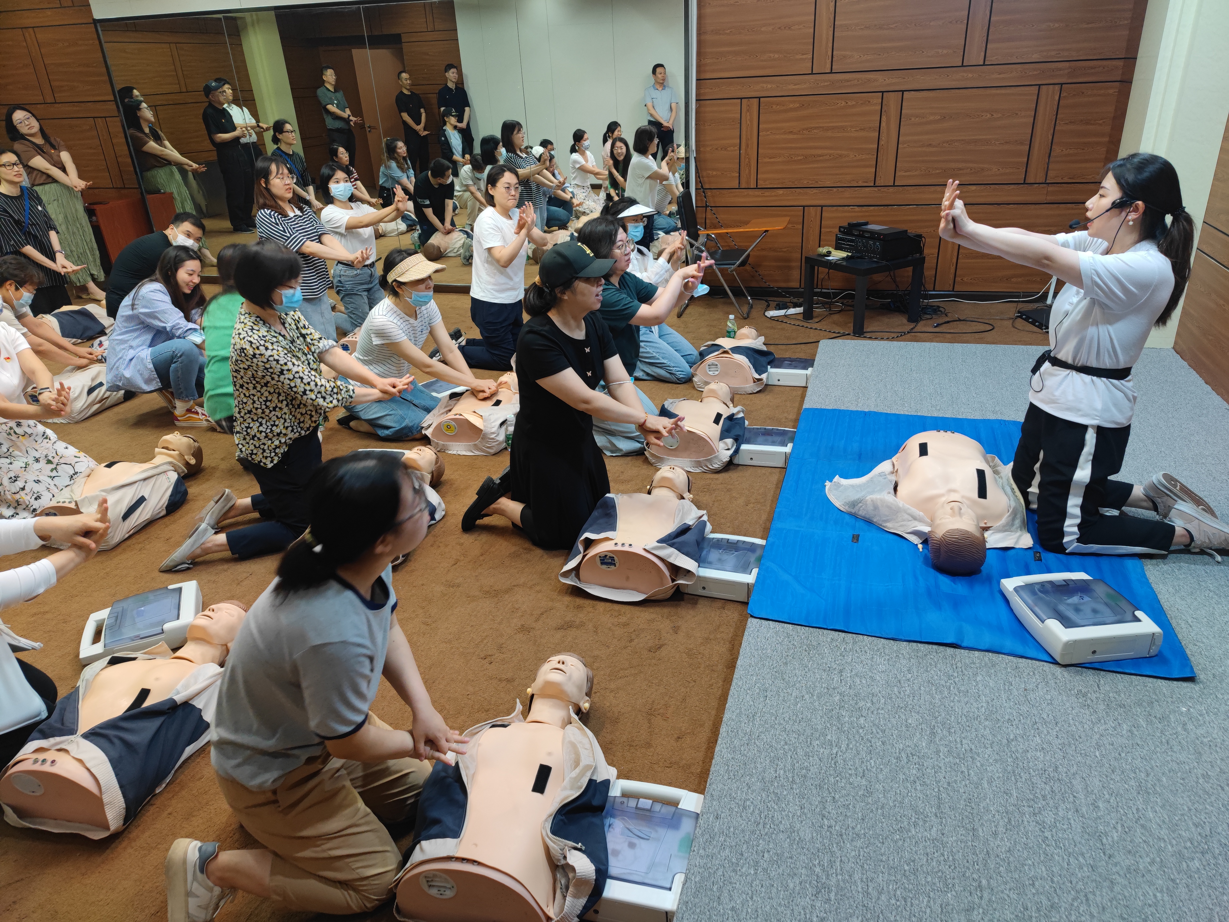 参观人员在安全讲师的引导下,参观了场馆内消防安全、交通安全、人民防空、自然灾害等七大主题展区,并进行了“沉浸式”学习和体验。在消防安全展区,学习了防烟面具的使用技巧、高层逃生的知识技能、结绳自救方法及初级火灾的扑救方法;在交通安全展区,掌握了地铁发生危险时如何进行初级报警、火灾扑救及如何有效撤离;在民防展区,学习了战时空袭的躲避要领;在急救训练室,通过“实操教学+动手实践”的方式进行心肺复苏的训练和人工呼吸方法及要领的学习,了解了急救黄金十分钟的知识和除颤仪的使用方法,初步掌握了急救知识和技能;自然灾害展区,通过互动演练学习地震来临时的处置手段,通过震后倾斜房屋模型的感官错位,亲身体验地震波动。