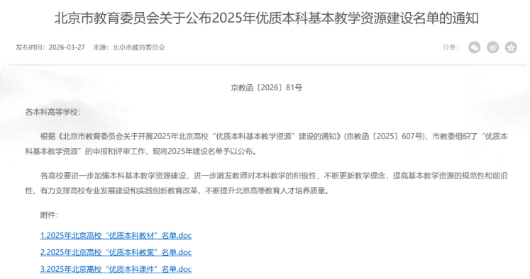 喜报|应急管理出版社三部教材入选北京市“2025年优质本科基本教学资源建设名单”