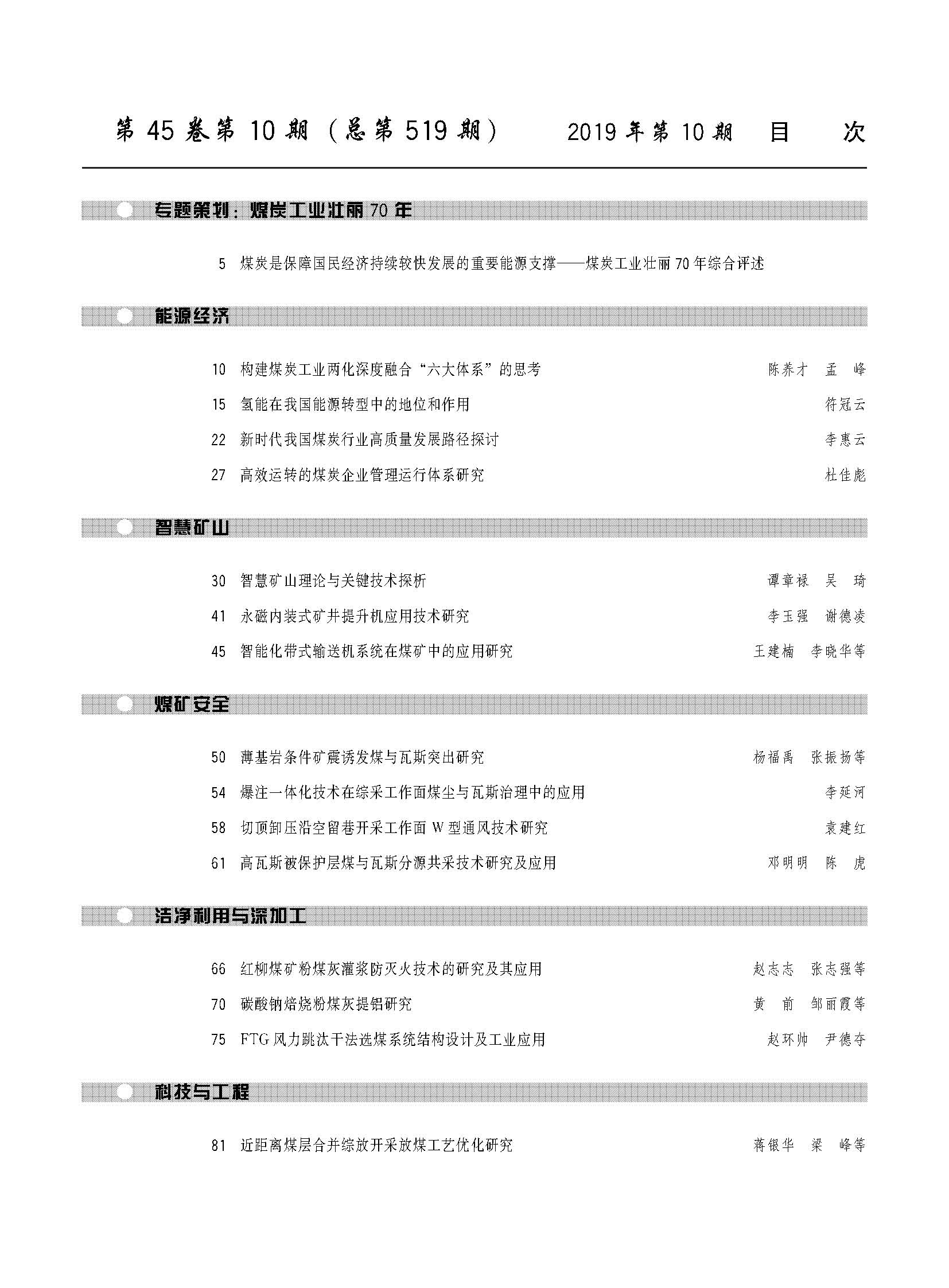 《中国煤炭》2019年第10期