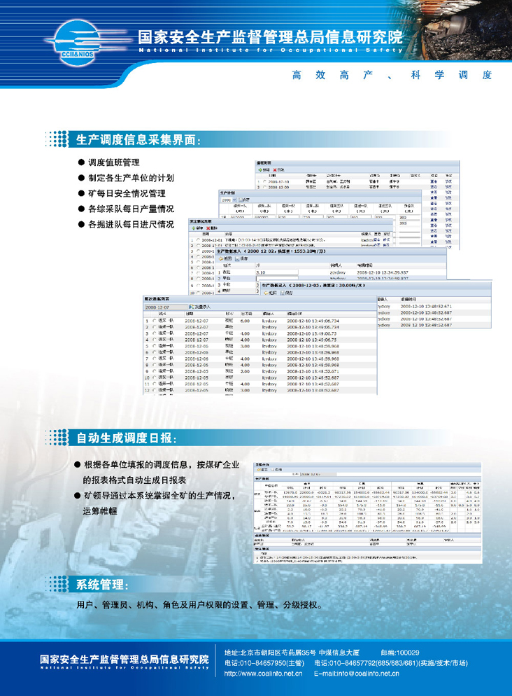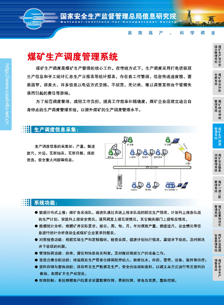 煤矿生产调度是煤矿生产管理的核心工作,在传统方式下,生产调度系统采用打电话方式获取生产信息和手工统计汇总生产日报表等统计报表,存在着工作繁琐、信息传递速度慢、覆盖面窄、误差大、许多信息以电话方式交换、不规范、无记录、难以调查某些由于管理失误而引起的责任等弊端。 在信息化技术和网络技术飞速发展的今天,大部分煤矿调度部门现有的手工管理已明显落后了。为了规范调度管理,减轻工作负担,提高工作效率和精确度,,煤矿企业应建立适合自身的生产调度管理系统,以提升煤矿企业的生产调度管理水平。