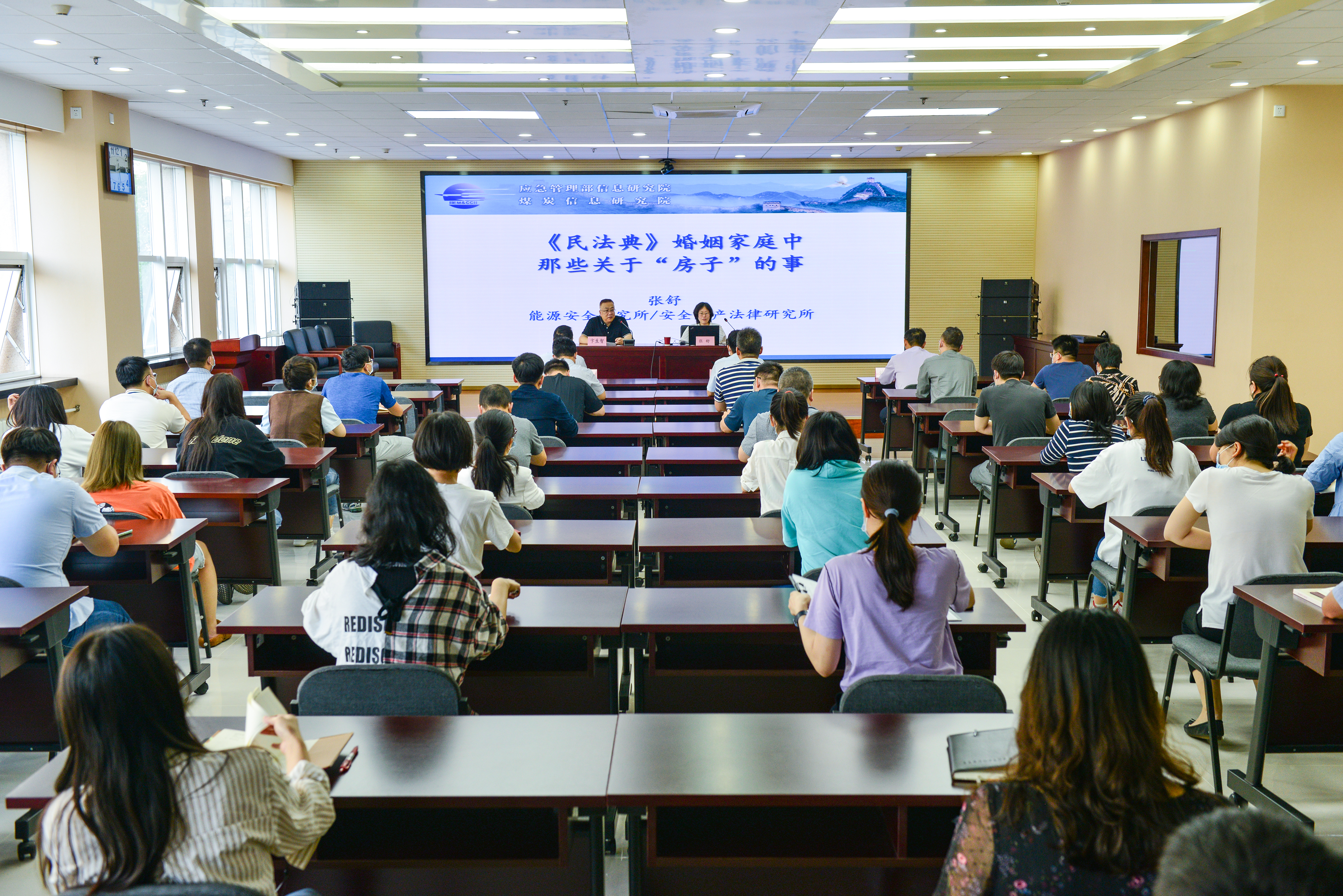 按照院党委党史学习教育领导小组《关于开展党史学习教育的实施方案》安排,经广泛征求干部职工的意见,围绕《民法典》中婚姻家庭部分重点内容,于9月23日举办了“我为群众办实事”实践活动法律咨询讲座。讲座由信息研究院党委党史学习教育领导小组办公室主任、副院长卞生智主持,在家的院领导刘文革、刘柯新和干部职工80余人参加讲座。
