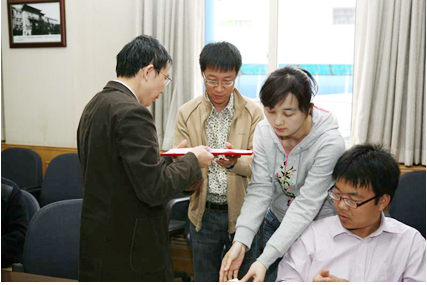 信息院党委书记吕敬民为获得总局直属机关团委“五四”演讲活动奖励的团支部和团员颁发证书