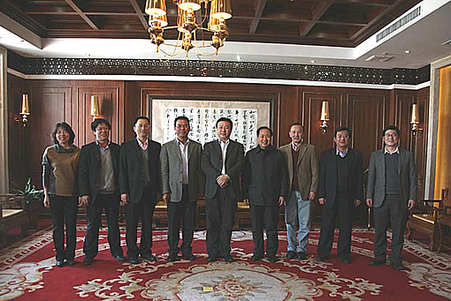 信息院院长黄盛初(左四)、副院长刘文革(左三)会见榆林市委书记胡志强(中)、副市长万恒(右四)