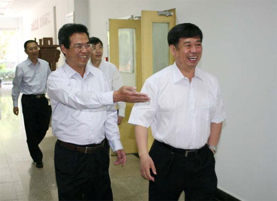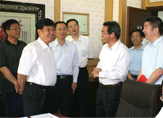 黄盛初院长、吕敬民书记和院班子其他成员迎接付建华局长来信息院