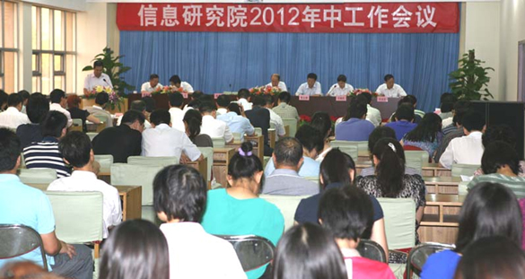 黄盛初院长在会上作了题为《坚持稳中求进,大力开拓市场,确保实现全年工作目标》的工作报告,从七个方面总结回顾了信息院2012年上半年的工作,深入分析了信息院发展所面临的形势,从八个方面对全院下半年重点工作任务进行了安排部署:(1)坚持围绕中心,更加有力地支撑安全生产中心工作;(2)大力开拓市场,确保实现全院经济增长目标;(3)创新经营方式,拓宽业务领域,扩大经营规模;(4)创新体制机制,增强发展活力;(5)加强能力建设,夯实发展基础;(6)坚持主动高效,提升综合协调和服务水平;(7)培育优秀企业文化,构建和谐发展的信息院;(8)加强和改进党建工作,迎接党的十八大胜利召开。