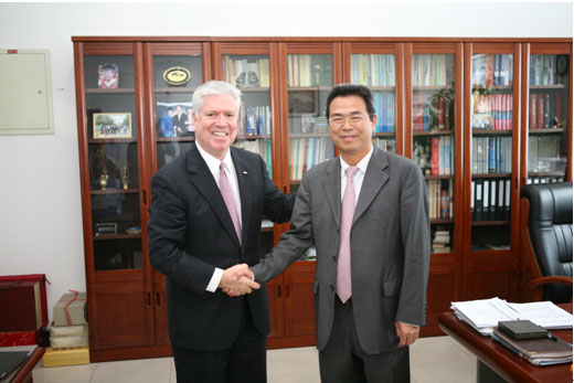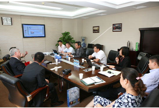 黄盛初院长与麦肯特先生洽谈合作,美国英思科公司、信息研究院综合办公室、能源安全研究所负责人和业务骨干参加了会见