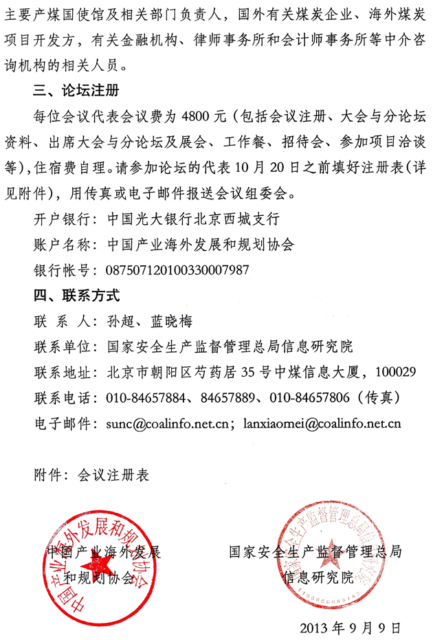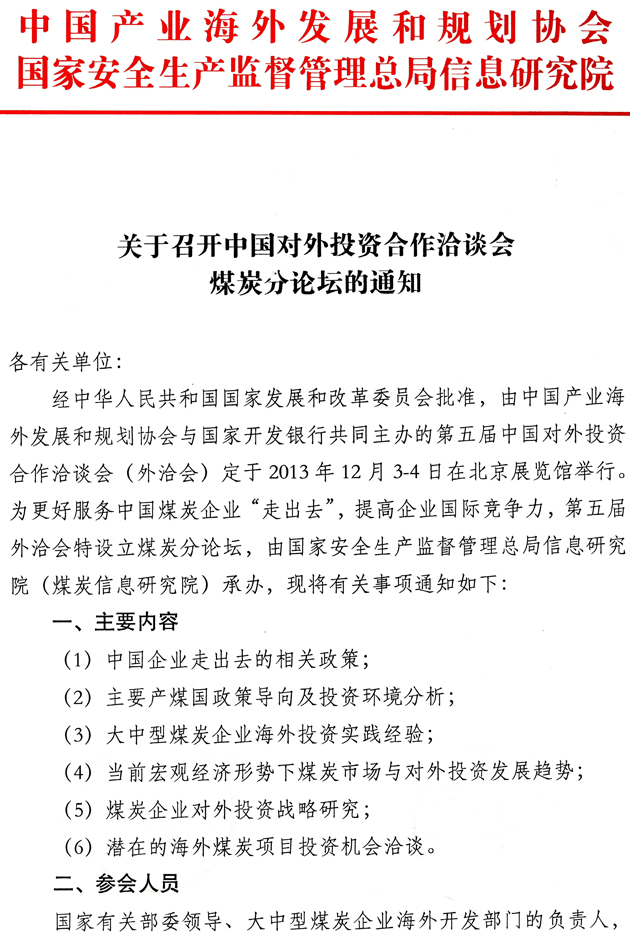 关于召开中国对外投资合作洽谈会煤炭分论坛的通知