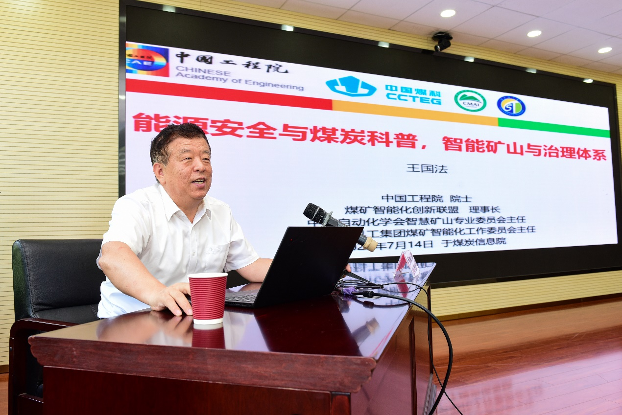 王国法院士围绕新形势下的产业格局变化与能源安全、高质量发展,煤炭科普,煤矿智能化建设与无人化开采技术装备研发应用、发展前景,基于全时空信息感知的煤矿安全智能管控体系,煤炭全方位安全观和现代能源与矿业治理体系等五个方面,全面介绍了能源安全的前景、煤矿智能化的愿景、矿业治理体系和煤矿安全的未来。