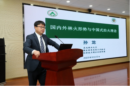 东北林业大学林学院院长孙龙围绕“国内外防火形势与中国式治火理念”进行主旨演讲,分析了国内外森林火灾面临的形势,介绍了国内外森林火灾预防和控制的典型做法,分享了中国特色治火理念。