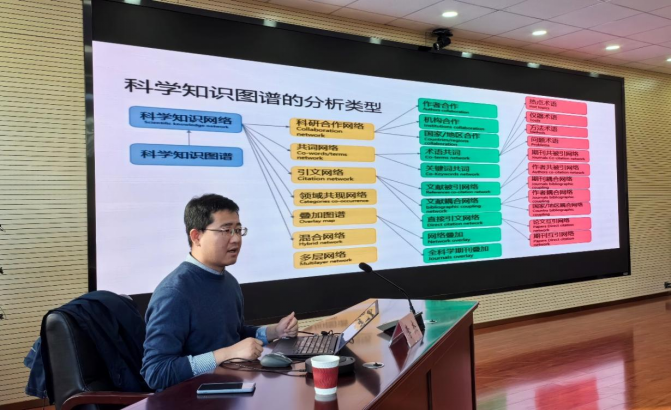 李杰副研究员围绕科学知识图谱背景,科学知识图谱起源,科学知识图谱基础理论,科学知识图谱数据、工具、流程,科学知识图谱的可视化设计和安全科学知识图谱实践等方面作了了全方面介绍。报告旁征博引、内容丰富、深入浅出,对信息研究院情报信息、大数据等科研工作具有较强的现实指导性。在互动环节,李杰副研究员与信息技术所、信息资源部、矿山安全研究所相关人员进行了交流。