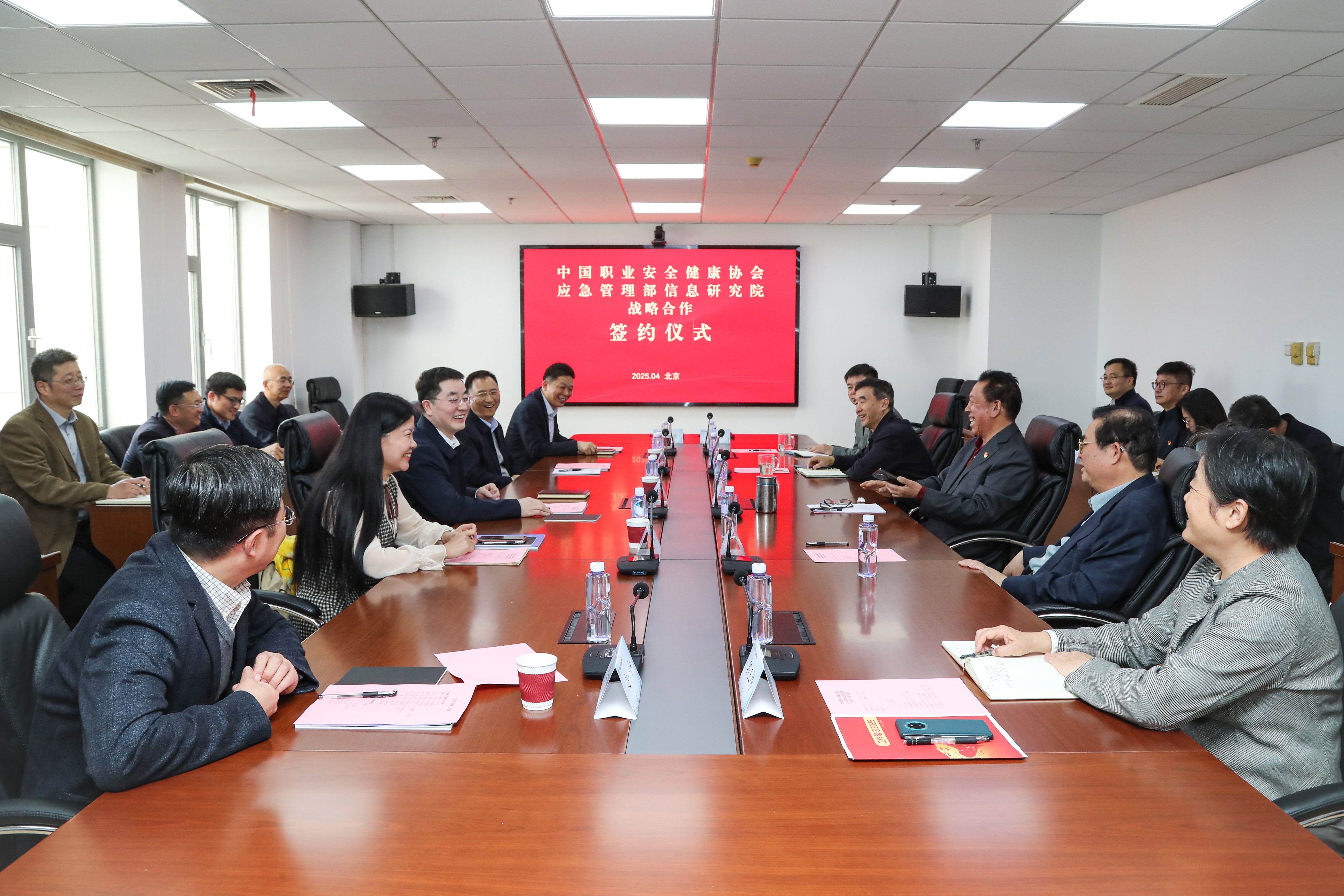 4月14日,信息研究院与中国职业安全健康协会在京签署战略合作协议。协会党委书记、理事长王德学和院党委书记、院长郑景奇共同见证协议签署,李伟副院长和协会李德清副理事长分别代表双方签约,副院长刘文革、杨恩道和协会副秘书长郭玉梅出席签约仪式。仪式由协会党委副书记欧广主持。