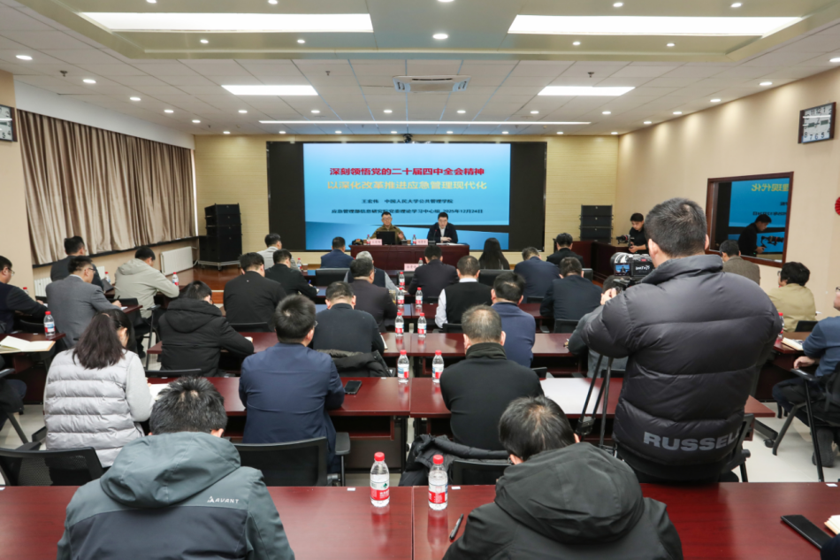 为深入学习贯彻党的二十届四中全会精神,切实把思想和行动统一到党中央决策部署上来,近日,信息院召开理论中心组(扩大)学习会,邀请中国人民大学王宏伟副教授作了题为《深刻领悟党的二十届四中全会精神,以深化改革推进应急管理现代化》的专题辅导。院党委书记、院长郑景奇同志主持会议,院领导班子成员,各部门(单位)负责人参会,院青年理论学习小组各组长列席。