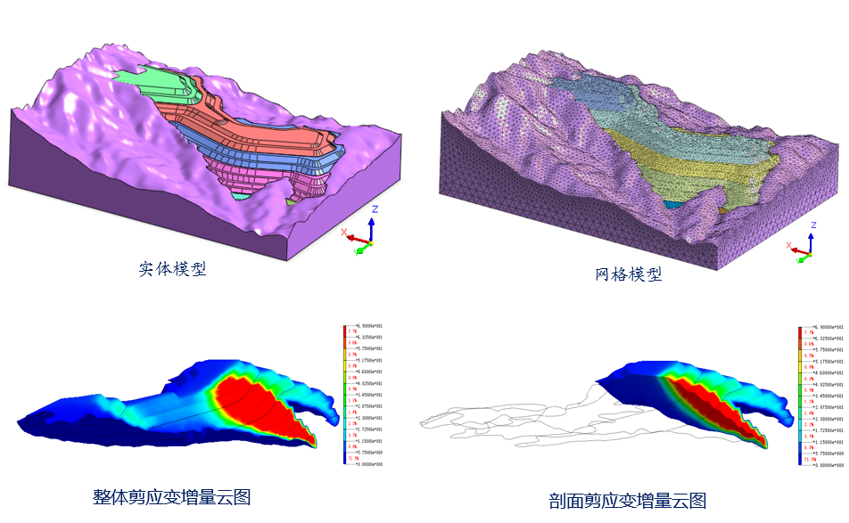 3.非煤矿山边坡稳定性。主要开展露天边坡稳定性研究、露天转地下边坡安全论证、排土场稳定性研究。