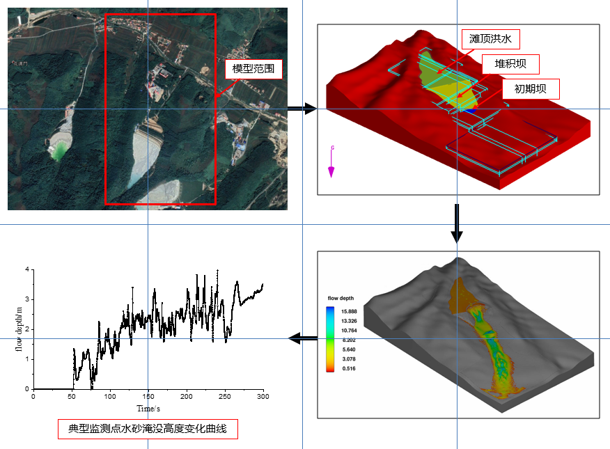1.尾矿库安全论证。主要开展尾矿库三维渗流稳定性研究、地震动力反应分析、溃坝风险、溃坝模拟和尾矿库理论政策研究。