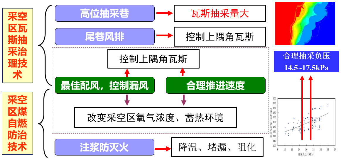3.煤火-瓦斯耦合灾害治理技术。理论分析与试验结合方式确定采空区瓦斯与煤火灾害防治的重点区域,确定出最佳配风、安全推进度等关键参数,提出协同防治技术体系。
