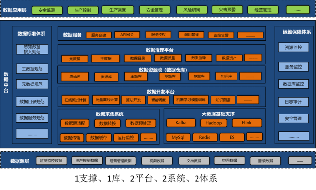 集多源异构数据采集、计算、数据质量管理、大数据存储、人工智能等技术于一体,构建数据中台。