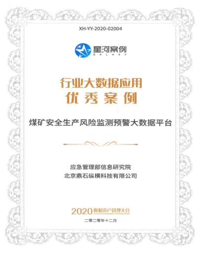 2. “煤矿安全生产风险监测预警大数据平台”荣获2020年大数据“星河”优秀案例奖